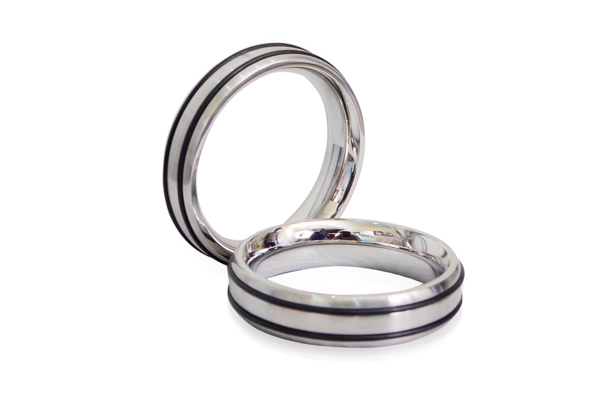 Stainless Steel Cock Ring with Double Black Rings